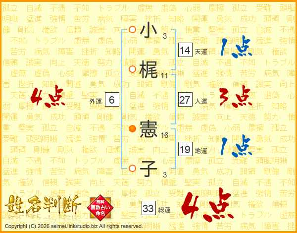 小梶憲子さんの総運は33画の4点!