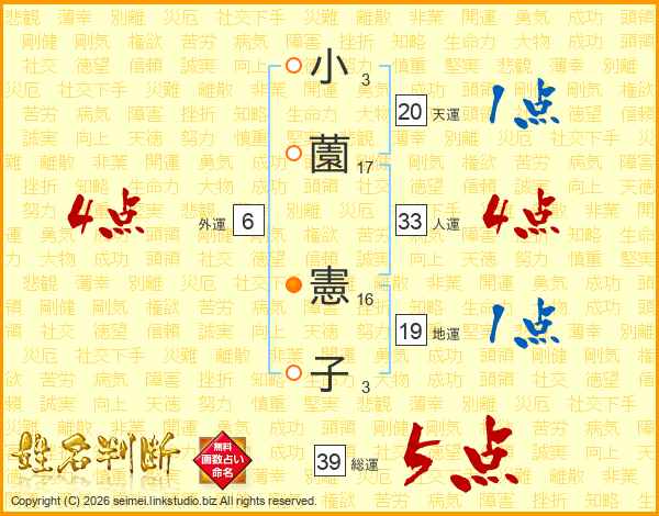 小薗憲子さんの人運は33画の4点!