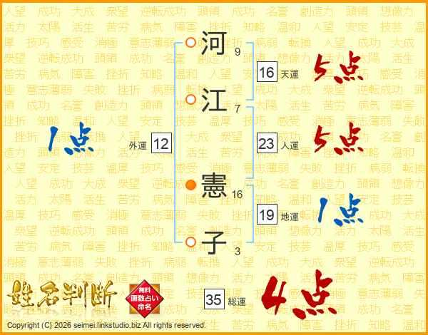 河(9画)江(7画) 憲(16画)子(3画)