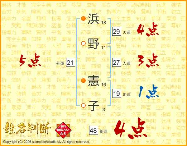 浜野憲子さんの総運は48画の4点!