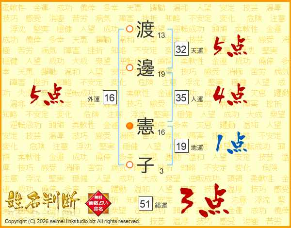渡邊憲子さんの総運は51画の3点!