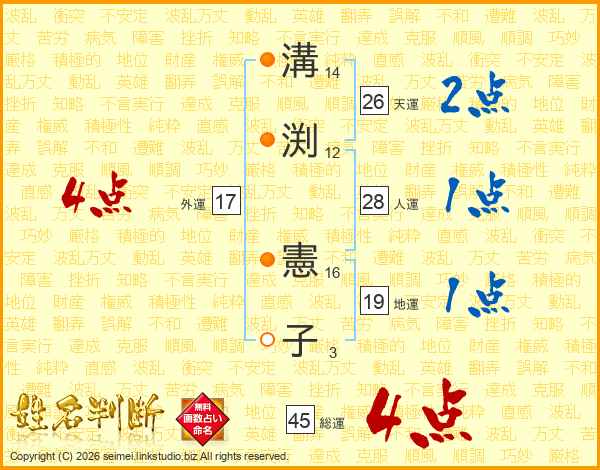 溝渕憲子さんの総運は45画の4点!