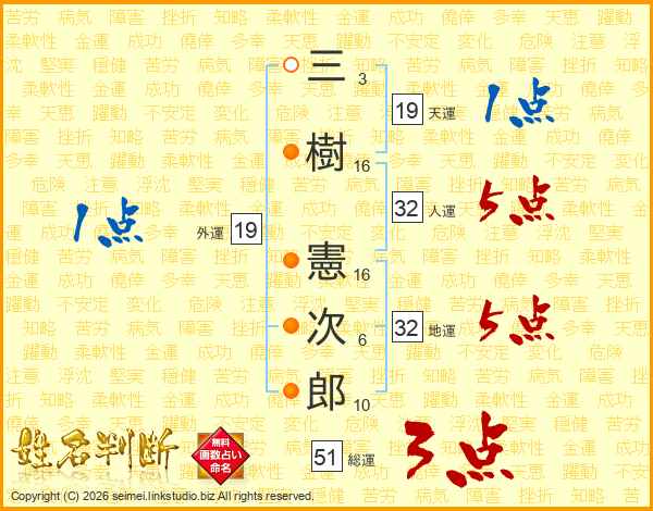 三(3画)樹(16画) 憲(16画)次(6画)郎(10画)