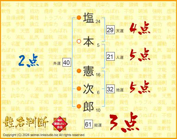 塩(24画)本(5画) 憲(16画)次(6画)郎(10画)