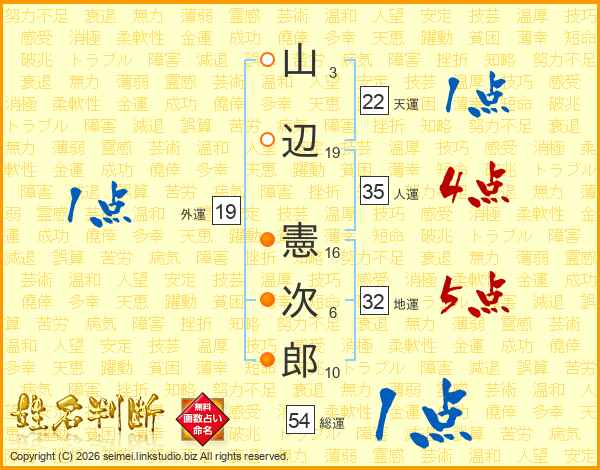 山(3画)辺(19画) 憲(16画)次(6画)郎(10画)