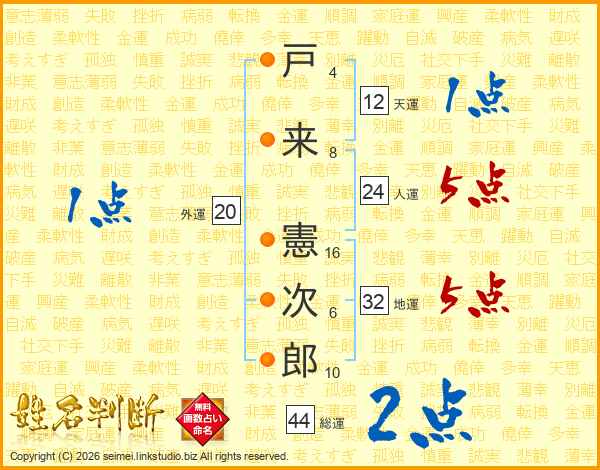 戸来憲次郎さんの総運は44画の2点!