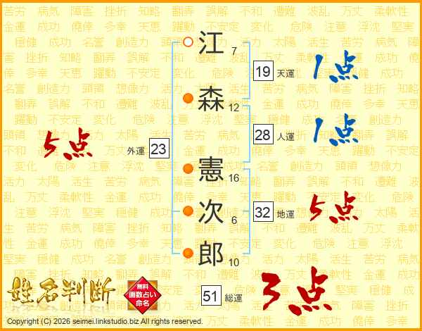 江森憲次郎さんの天運は19画の1点!