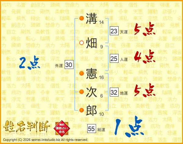 溝(14画)畑(9画) 憲(16画)次(6画)郎(10画)