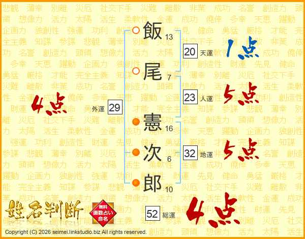 飯尾憲次郎さんの総運は52画の4点!