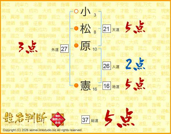 小松原憲さんの総運は37画の5点!