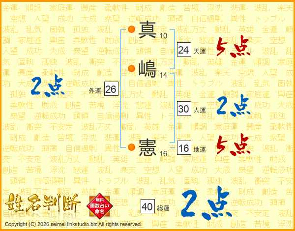 真嶋憲さんの人運は30画の2点!