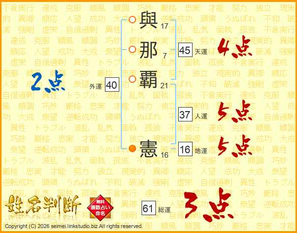 與那覇憲さんの人運は37画の5点!