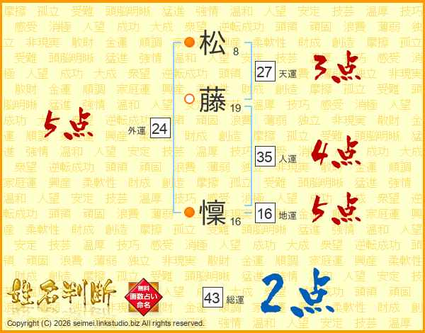 松藤懍さんの総運は43画の2点!