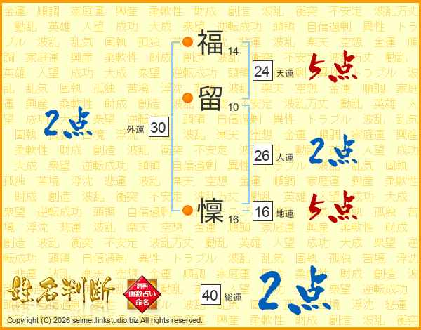 福留懍さんの総運は40画の2点!