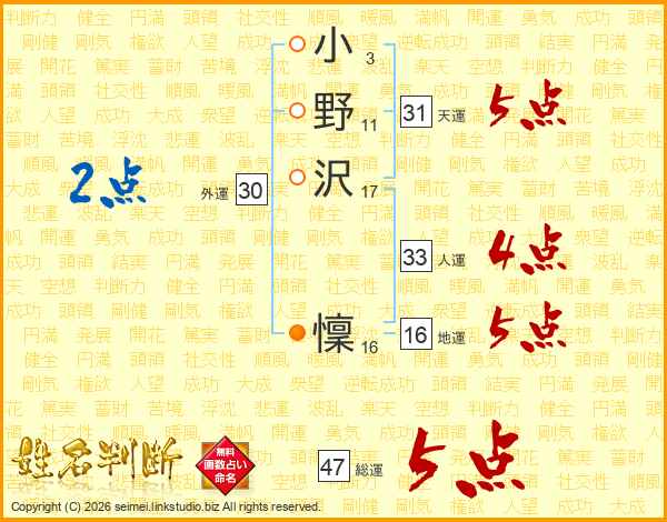 小野沢懍さんの天運は31画の5点!