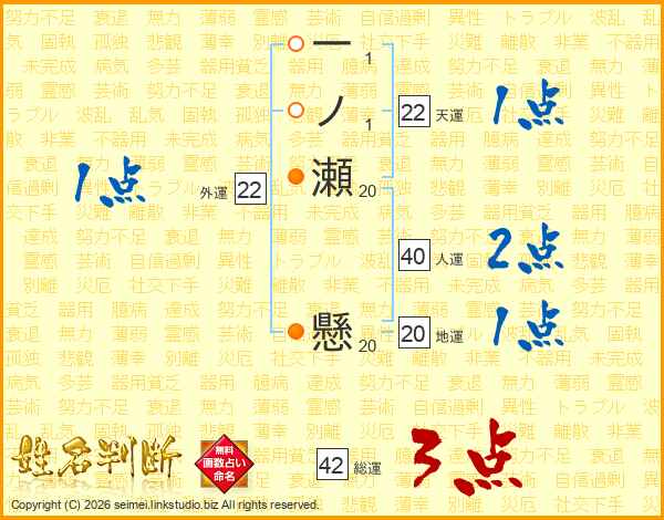 一(1画)ノ(1画)瀬(20画) 懸(20画)