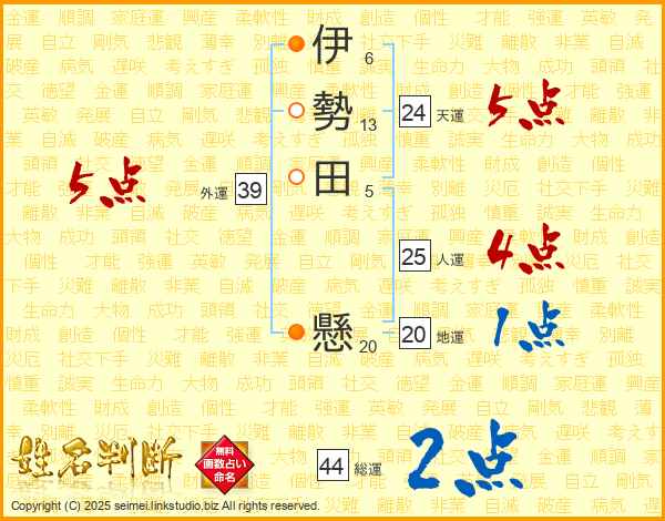 伊(6画)勢(13画)田(5画) 懸(20画)