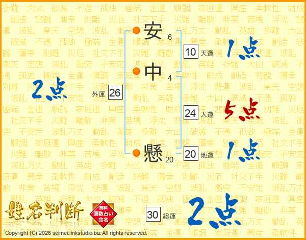 安中懸さんの人運は24画の5点!