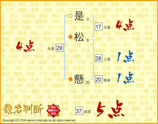 是松懸さんの天運は17画の4点!