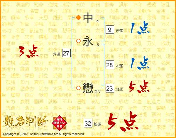 中永戀さんの総運は32画の5点!