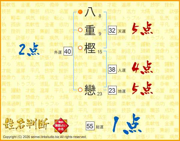 八重樫戀さんの総運は55画の1点!