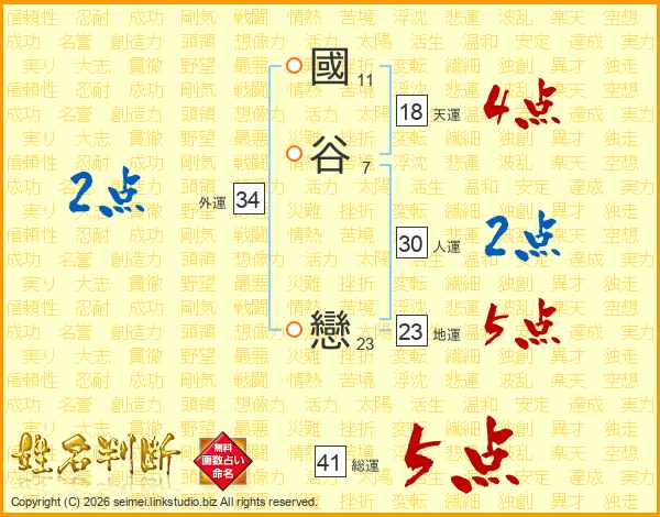 國谷戀さんの総運は41画の5点!