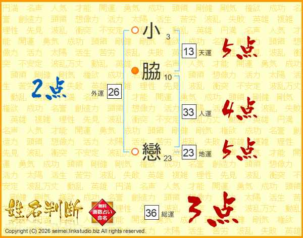 小脇戀さんの天運は13画の5点!