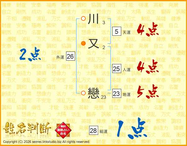 川又戀さんの総運は28画の1点!