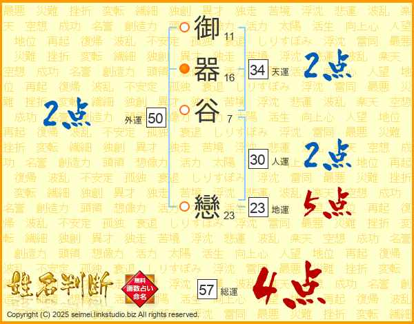 御器谷戀さんの総運は57画の4点!