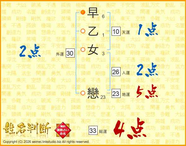 早乙女戀さんの総運は33画の4点!
