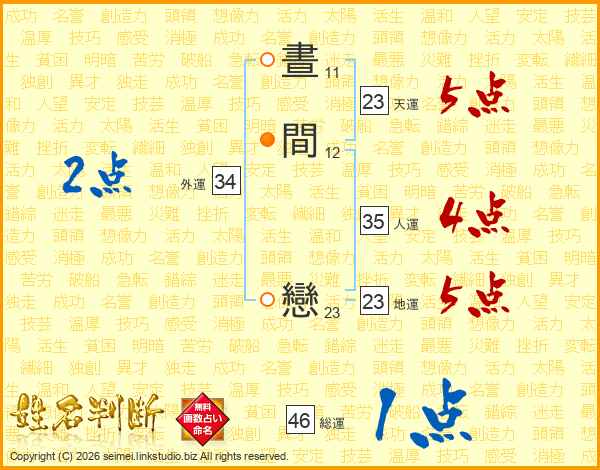 晝間戀さんの地運は23画の5点!