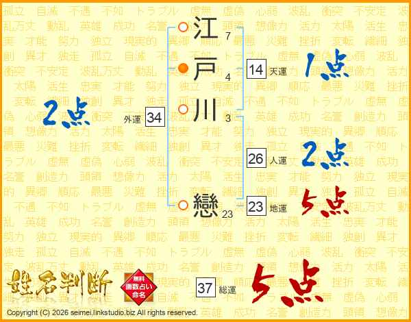 江戸川戀さんの総運は37画の5点!