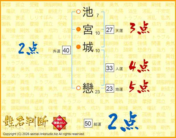 池宮城戀さんの総運は50画の2点!