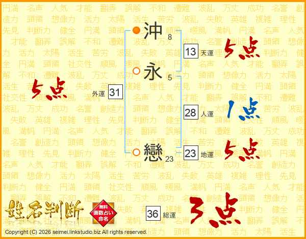 沖永戀さんの総運は36画の3点!
