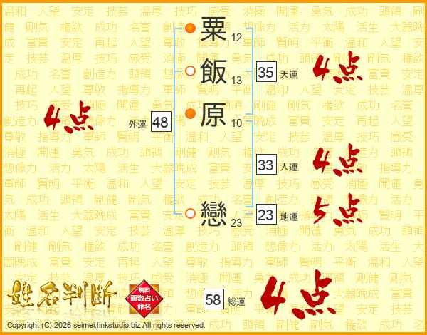 粟飯原戀さんの総運は58画の4点!