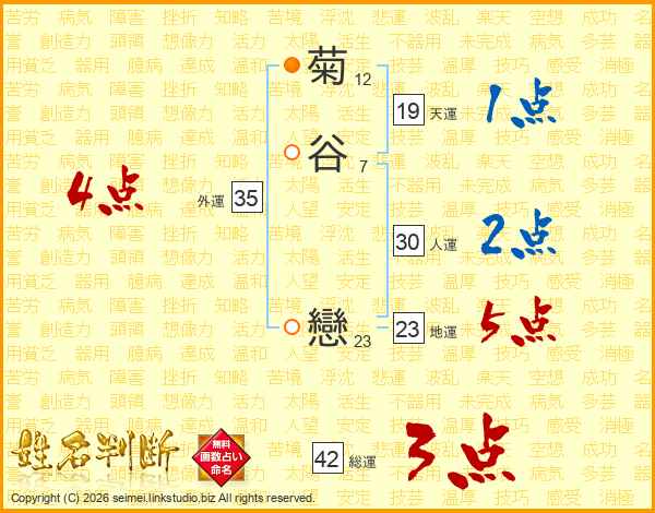 菊谷戀さんの総運は42画の3点!