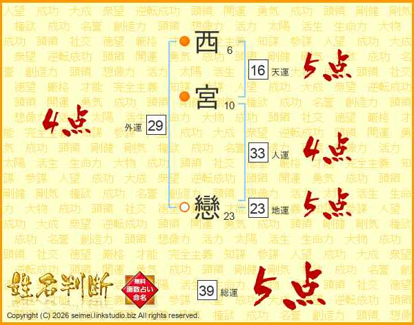 西宮戀さんの総運は39画の5点!