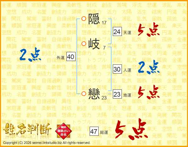 隠岐戀さんの総運は47画の5点!