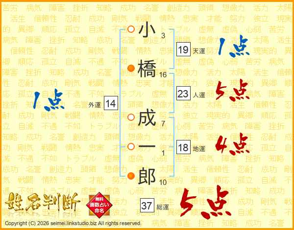 小橋成一郎さんの総運は37画の5点!