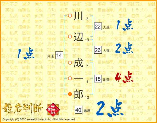 川辺成一郎さんの人運は26画の2点!