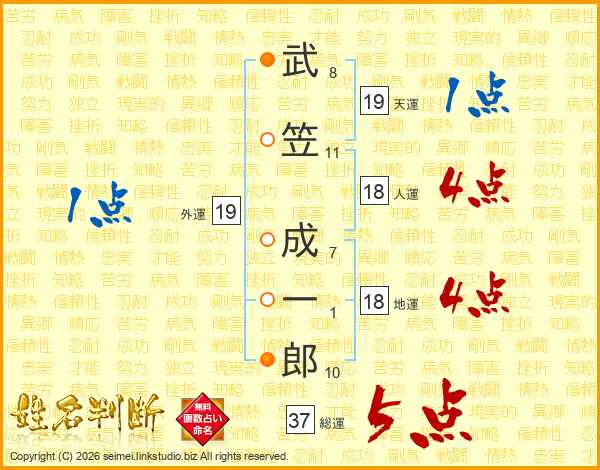 武笠成一郎さんの総運は37画の5点!