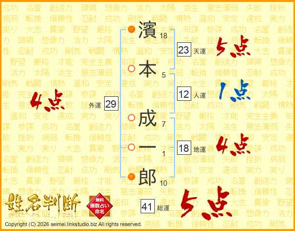 濱本成一郎さんの総運は41画の5点!