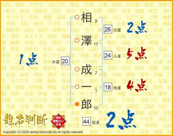 相澤成一郎さんの天運は26画の2点!