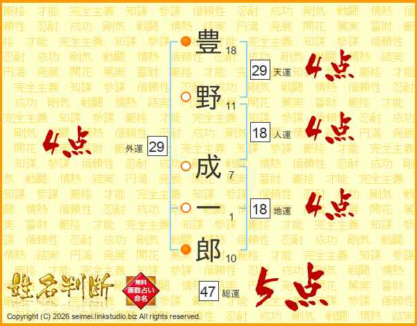 豊野成一郎さんの総運は47画の5点!