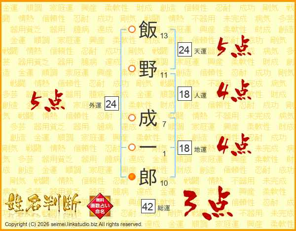 飯野成一郎さんの総運は42画の3点!