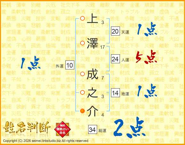 上澤成之介さんの総運は34画の2点!