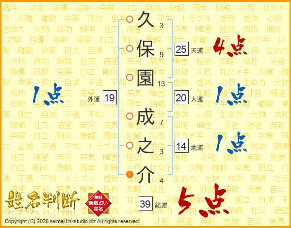 久保園成之介さんの天運は25画の4点!