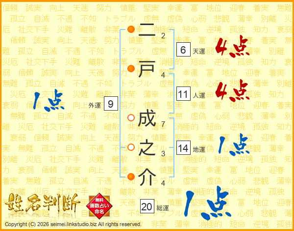 二戸成之介さんの人運は11画の4点!