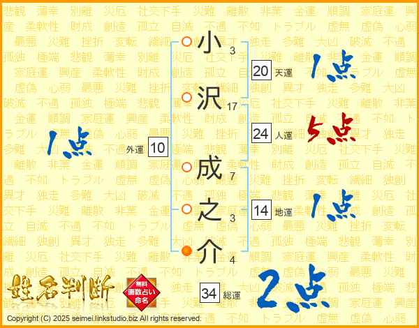 小(3画)沢(17画) 成(7画)之(3画)介(4画)