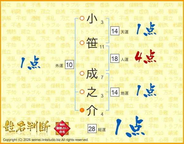 小笹成之介さんの人運は18画の4点!